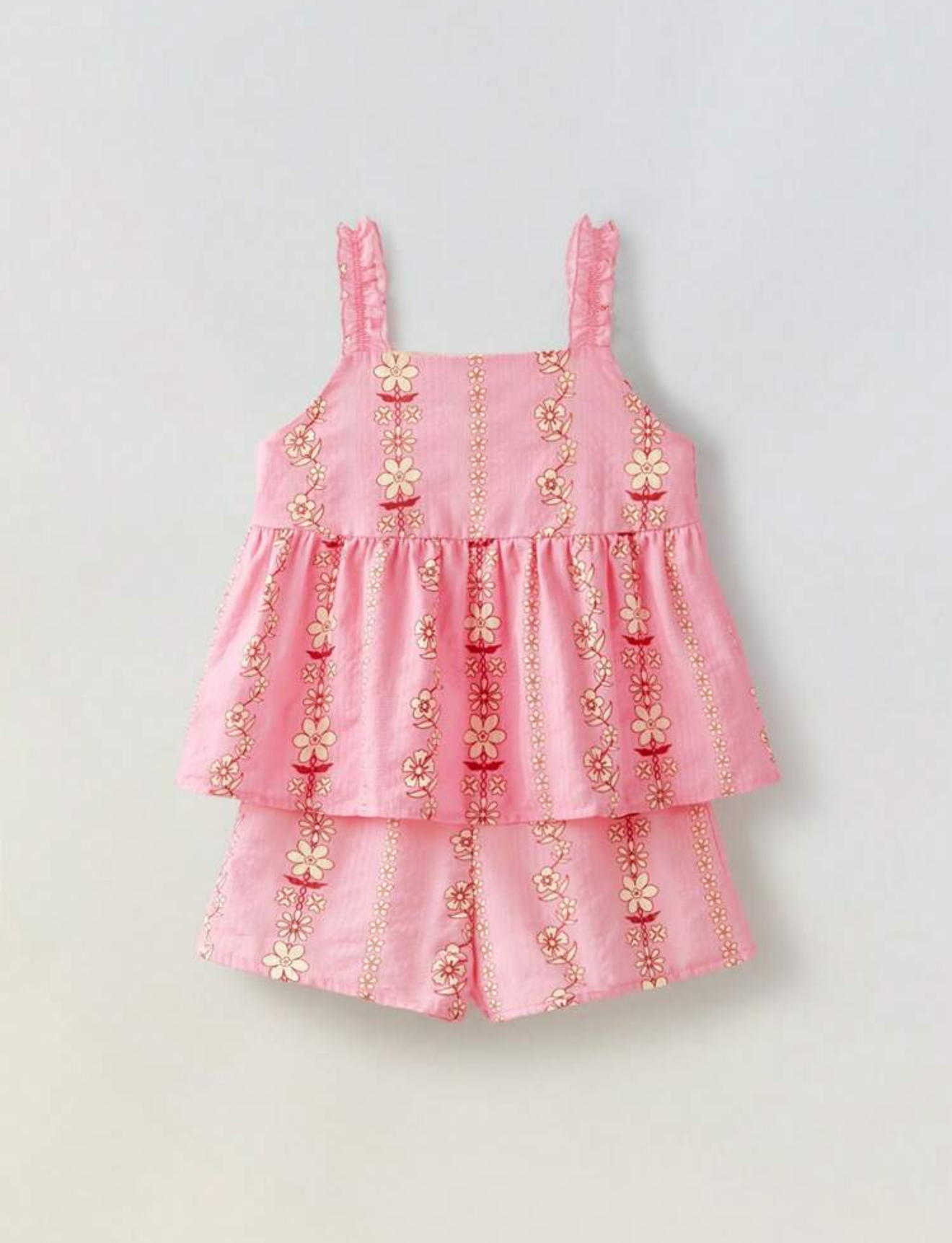 Conjunto short y top florecitas rosadas